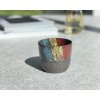 Kalíšek je ručně vyrobený ze světlé kameniny na hrnčířském kruhu s cákanci. Má objem cca 120-140ml a rozměry přibližně 5,5 x 7cm (výška x průměr). Kalíšek je vypálen na...